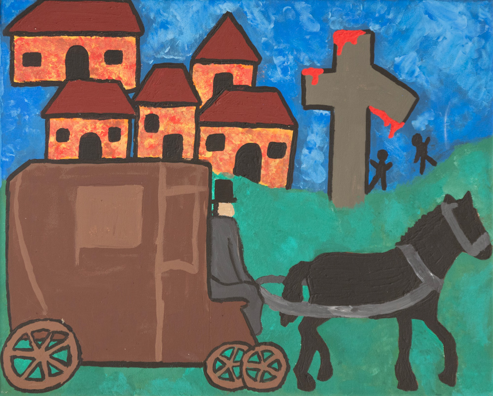 For years it went on like this, till two boys were brave enough and succeeded in chasing the man away. They built a cross of wooden planks and put it in a hole, which they dug the night before. On the next morning the two boys hid near the cross and waited for the man to show up. They knew that he came by daily after the church bells rang.