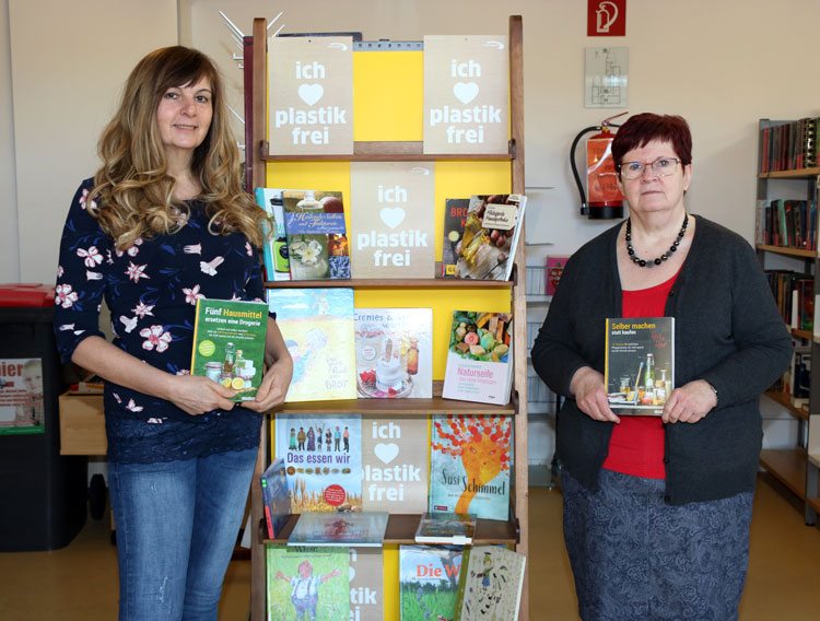 Auch die Stadtbibliothek in Sankt Valentin nimmt sich dem Thema „Plastikfrei“ an. Deshalb haben unsere Mitarbeiterinnen Ingrid Fröschl und Johanna Steinacher dem Thema ein eigenes Regal gewidmet. Zum Thema „Plastikfrei leben - was kann ich persönlich tun?“ haben beide eine ganze Reihe interessanter Bücher zusammengestellt. Zum einen sind es zahlreiche Sachbücher, die Tipps zum Selbermachen von Lebensmitteln, Hausmitteln, etc. beinhalten und auch gleich die umweltverträglichen Verpackungstipps mitliefern. Zum anderen wurden auch spannende Kinderbücher zum Thema „Umwelt“ gesammelt, um auch schon unsere kleinen Leser zu einem bewussten Umgang mit unserer Welt zu animieren. Kinder leihen Bücher in der Stadtbibliothek übrigens gratis!